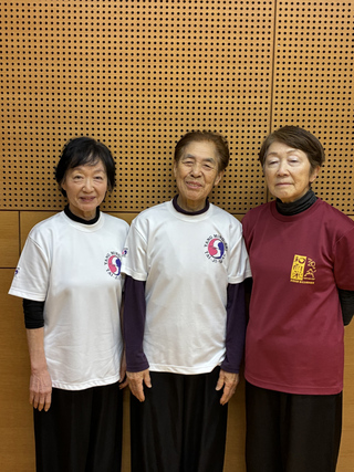 「40過ぎたくらいからいろんな体調不良がでてきて、太極拳の教室を探していたんです。いくつか行ってはみたんですけど自分に合ってなかった。そんな時にここを見つけて、(そのとき)募集もしてなかったんですけど、無理やりお願いして仲間に入れていただいた。ここが私にぴったり合っていて、すごく居心地が良くて、しっかり指導してくださるのでこれからもずっと続けていきたい」(最も若い手島 紀子さん)