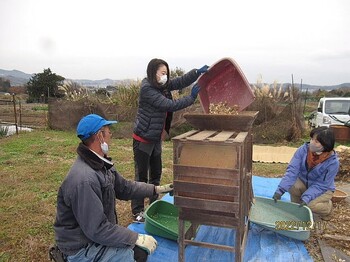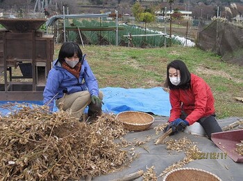 渋沢にある畑で親子の参加者のみなさんと一緒に大豆を栽培し、採れた大豆でお味噌作りや