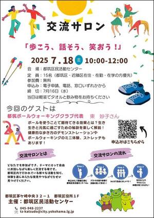 (終了しました)7月交流サロンのテーマは『歩こう、話そう、笑おう!』です。