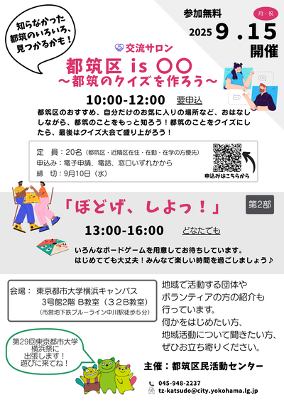 (終了しました)9月交流サロン『都筑区 is 〇〇 ~都筑のクイズを作ろう~』