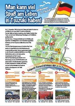 都筑区を紹介したリーフレットやごみの分け方や出し方などを説明したパンフレットをドイツ語で表記しています。