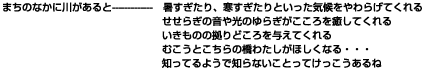 石がゴロゴロしてるような河原はないけれど、これからできる中央親水公園にはなだらかな斜面が水辺までつづく広場ができる予定だ。