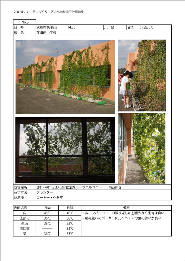 実際に緑のカーテンに取り組んだご家庭の協力を得て、緑のカーテンの効果を、赤外線カメラで測定し検証しました。よく繁った緑のカーテンは、直射日光を遮ることで熱を抑え、気温の上昇を防いでくれることがわかりました。