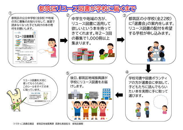 ~家庭で不要になった子ども向け図書を集め、区内小学校等へ「リユース図書」としてプレゼントしています。~