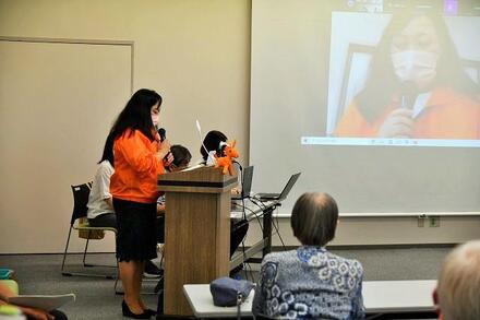 当事者(かながわオレンジ大使)、認知症サポート医の講演が行われた。(写真は認知症サポート医の小林雅子先生)